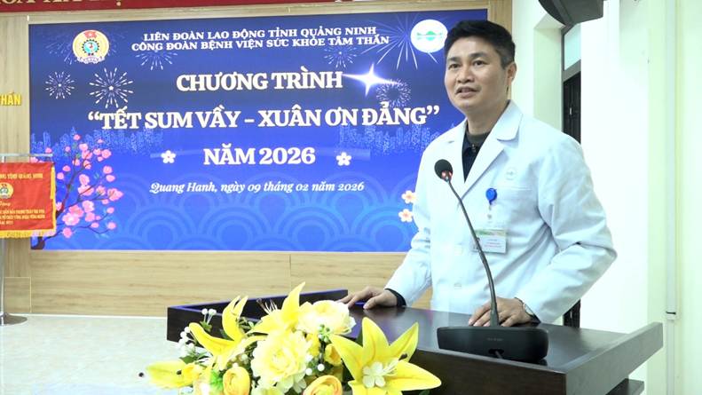 Nhân dịp Tết Nguyên đán Bính Ngọ 2026, chiều ngày 09/02/2026, tại Bệnh viện Sức khỏe Tâm thần Quảng Ninh đã diễn ra chương trình “Tết sum vầy – Xuân ơn Đảng” với nhiều hoạt động ý nghĩa, thiết thực dành cho đoàn viên công đoàn, viên chức, người lao động có hoàn cảnh khó khăn đang công tác tại Bệnh viện.