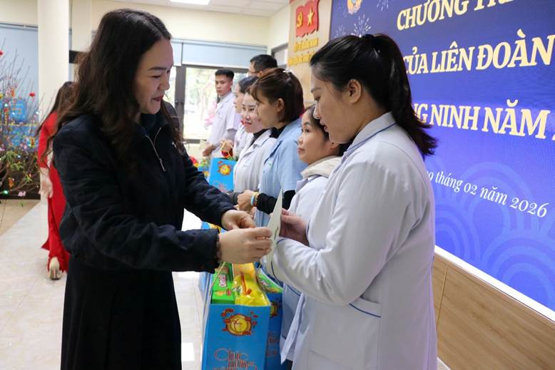 Tại chương trình, Liên đoàn Lao động tỉnh Quảng Ninh phối hợp với Công đoàn phường Quang Hanh đã trao 30 suất quà Tết cho đoàn viên, người lao động có hoàn cảnh khó khăn của Bệnh viện; mỗi suất gồm tiền mặt và túi quà Tết, với tổng trị giá 30 triệu đồng.