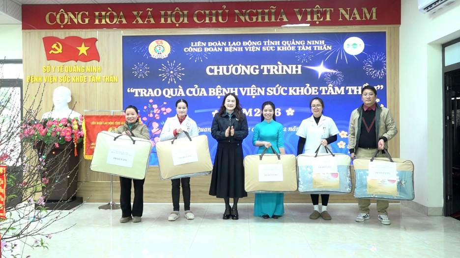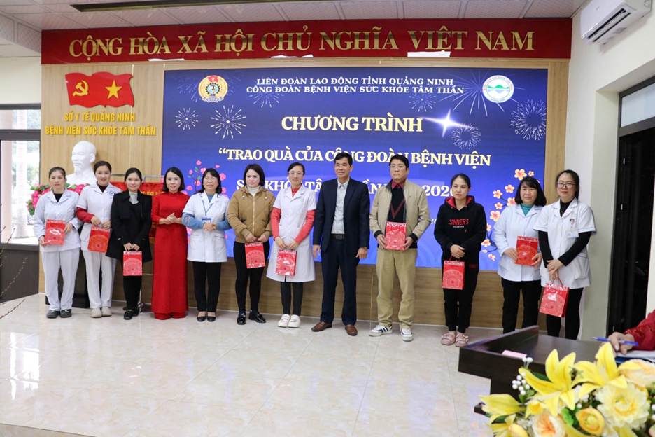 Tiếp nối sự quan tâm đó, Công đoàn Bệnh viện Sức khỏe Tâm thần Quảng Ninh đã trao 30 suất quà cho đoàn viên công đoàn có hoàn cảnh khó khăn, với tổng số tiền 9 triệu đồng. Đồng thời, Bệnh viện Sức khỏe Tâm thần Quảng Ninh cũng trao tặng 30 phần quà ý nghĩa, thiết thực cho viên chức, người lao động có hoàn cảnh khó khăn, với tổng trị giá 19,5 triệu đồng.