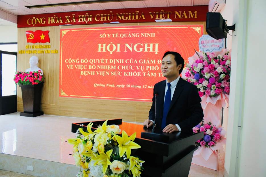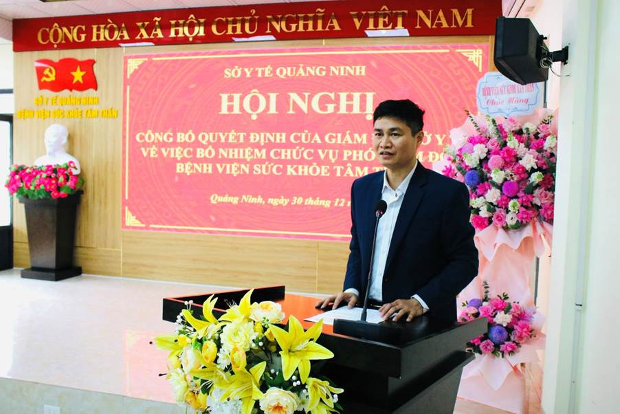 Thay mặt tập thể Bệnh viện, ThS, BS Vũ Minh Hạnh – Giám đốc Bệnh viện đã gửi lời chúc mừng tới tân Phó Giám đốc, đồng thời bày tỏ kỳ vọng đồng chí sẽ vững vàng trên cương vị mới, tiếp tục cùng Ban Giám đốc lãnh đạo đơn vị hoàn thành xuất sắc mọi nhiệm vụ được giao, góp phần nâng cao uy tín và chất lượng hoạt động của Bệnh viện Sức khỏe tâm thần Quảng Ninh trong thời gian tới.