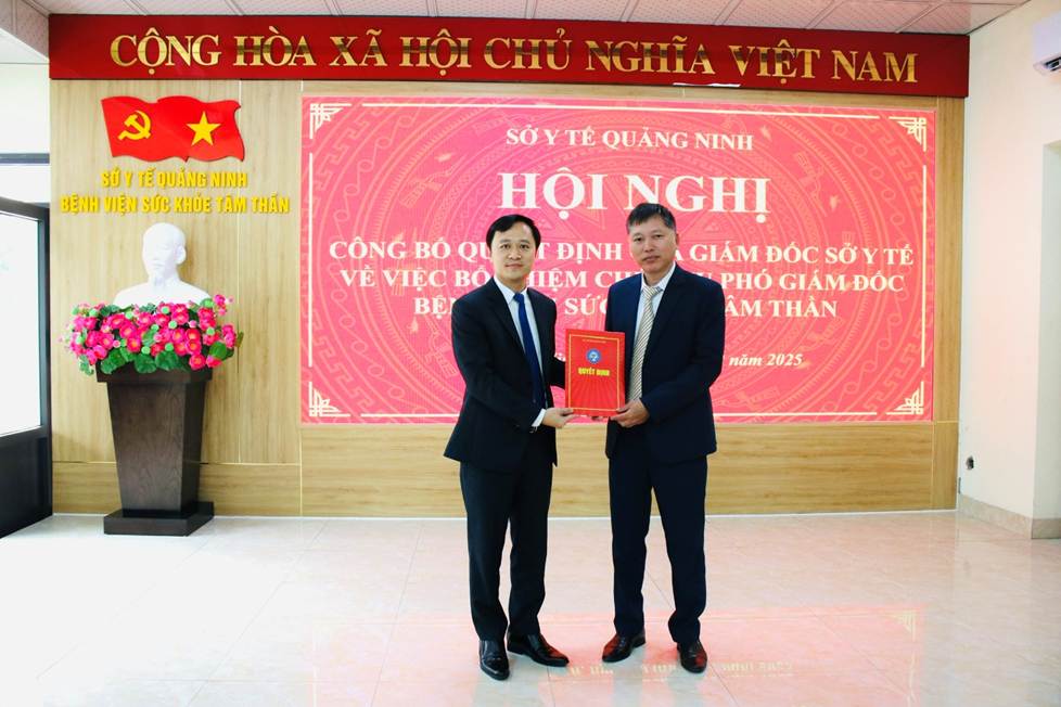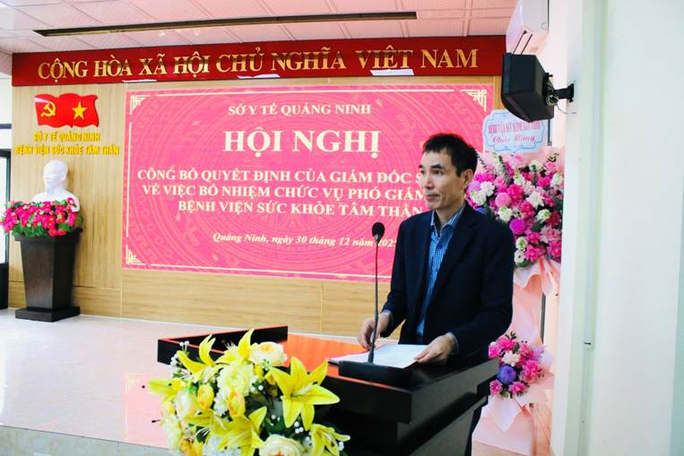 Tại buổi lễ, thừa ủy quyền của Quyền Giám đốc Sở Y tế, đồng chí Nguyễn Xuân Tình đã công bố Quyết định số 2918/QĐ-SYT ngày 18/12/2025 của Giám đốc Sở Y tế tỉnh Quảng Ninh về việc bổ nhiệm đồng chí BS.CKI Nguyễn Văn Lũy giữ chức vụ Phó Giám đốc Bệnh viện Sức khỏe tâm thần Quảng Ninh.