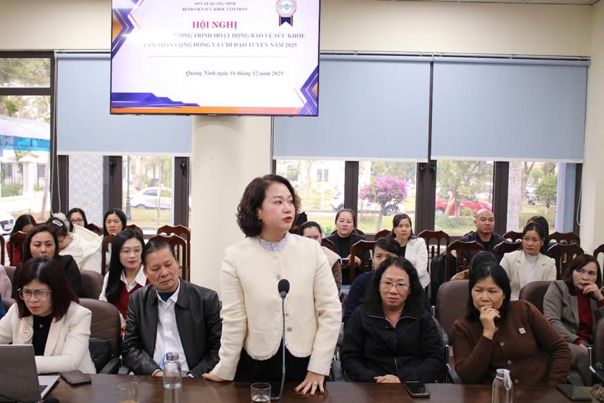 Phát biểu khai mạc Hội nghị, Ths. BS Vũ Minh Hạnh – Giám đốc Bệnh viện Sức khỏe tâm thần nhấn mạnh: Hoạt động bảo vệ sức khỏe tâm thần cộng đồng có vai trò đặc biệt quan trọng trong hệ thống y tế cơ sở, góp phần phát hiện sớm, quản lý, điều trị và nâng cao chất lượng cuộc sống cho người bệnh tâm thần ngay tại cộng đồng. Đồng chí ghi nhận và biểu dương sự nỗ lực, tinh thần trách nhiệm của đội ngũ cán bộ y tế tuyến cơ sở trong việc phối hợp triển khai các hoạt động chuyên môn trong thời gian qua, đồng thời đề nghị tiếp tục tăng cường công tác chỉ đạo tuyến, đào tạo, hỗ trợ chuyên môn nhằm đáp ứng tốt hơn nhu cầu chăm sóc sức khỏe tâm thần của nhân dân trong tình hình mới.
