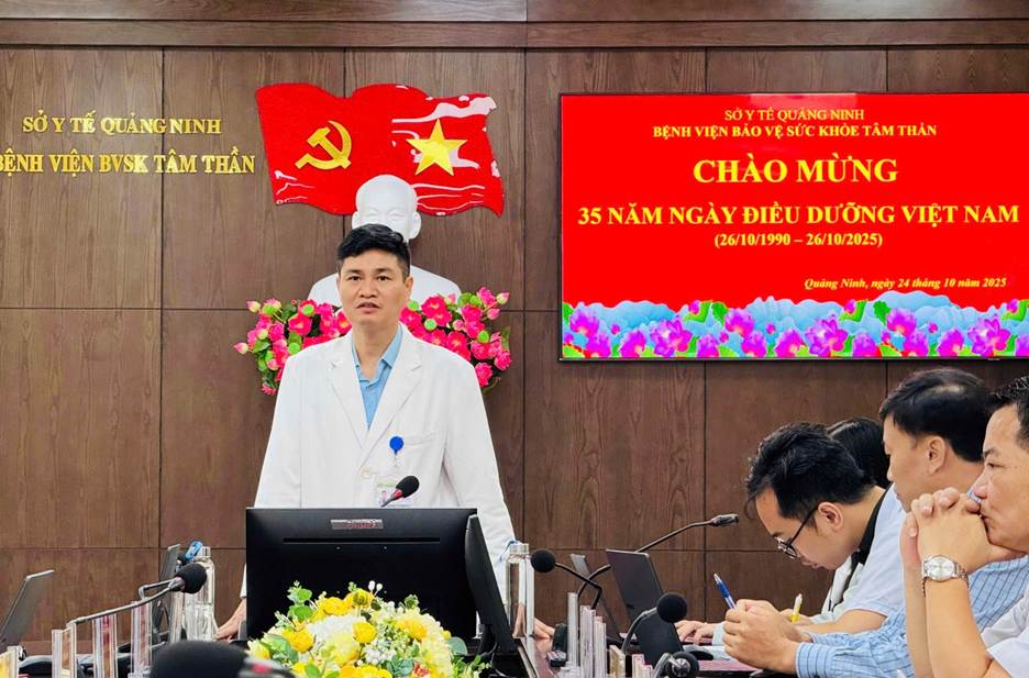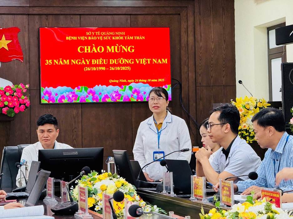 Hưởng ứng kỷ niệm 35 năm ngày thành lập Hội Điều dưỡng Việt Nam, tại hội nghị giao ban sáng ngày 24/10, Bệnh viện Bảo vệ Sức khoẻ Tâm thần Quảng Ninh đã tổ chức buổi gặp mặt thân mật nhằm tri ân, tôn vinh đội ngũ điều dưỡng viên và kỹ thuật viên – những con người tận tâm, kiên trì, luôn đồng hành cùng người bệnh trên hành trình điều trị và phục hồi sức khoẻ tâm thần.