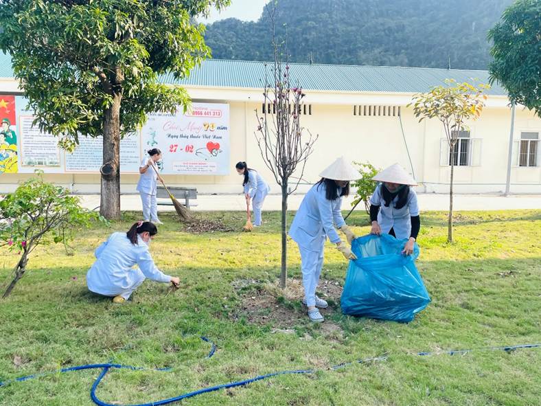 Các khoa, phòng thường xuyên tổ chức vệ sinh khuôn viên, thu gom rác thải, chăm sóc cây xanh, sắp xếp phòng làm việc, buồng bệnh gọn gàng, ngăn nắp. Những việc làm thiết thực, duy trì đều đặn không chỉ góp phần tạo cảnh quan sáng – xanh – sạch – đẹp mà còn nâng cao ý thức, trách nhiệm của mỗi cán bộ, nhân viên trong việc bảo vệ môi trường làm việc chung.