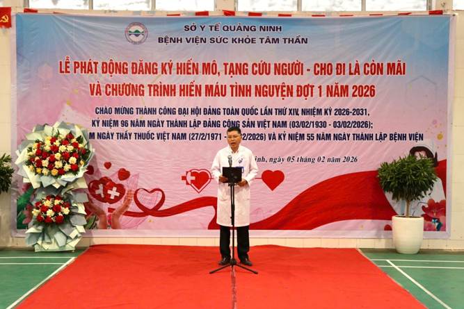 Sáng ngày 05/02/2026, Thực hiện Kế hoạch số 36/KH-BCĐHMTN ngày 08/01/2026 của Ban Chỉ đạo vận động hiến máu tình nguyện tỉnh Quảng Ninh; thiết thực chào mừng Đại hội Đảng toàn quốc lần thứ XIV, nhiệm kỳ 2026 – 2031, kỷ niệm 71 năm Ngày Thầy thuốc Việt Nam (27/02/1955 – 27/02/2026) và 55 năm Ngày thành lập Bệnh viện Sức khỏe Tâm thần Quảng Ninh (27/02/1971 – 27/02/2026), đơn vị đã tổ chức thành công chương trình phát động “Đăng ký hiến mô, tạng cứu người – Cho đi là còn mãi và Hiến máu tình nguyện đợt 1 năm 2026”.