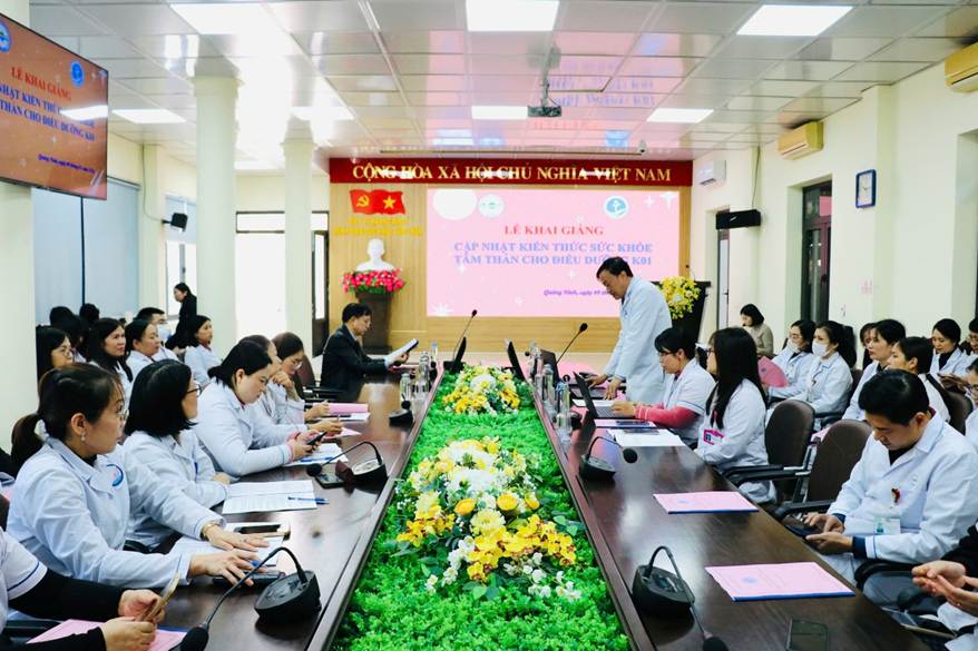 Chiều ngày 09/01/2026, Bệnh viện Sức khỏe tâm thần Quảng Ninh long trọng tổ chức Lễ khai giảng khóa đào tạo “Cập nhật kiến thức sức khỏe tâm thần cho điều dưỡng” – Khóa 01, nhằm nâng cao năng lực chuyên môn, kỹ năng chăm sóc và vai trò nghề nghiệp của đội ngũ điều dưỡng trong lĩnh vực sức khỏe tâm thần.