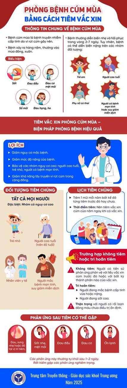 Để chủ động phòng chống cúm mùa, tập trung truyền thông người dân thực hiện tốt các nội dung theo khuyến cáo của Cục Y tế dự phòng, Bộ Y tế: