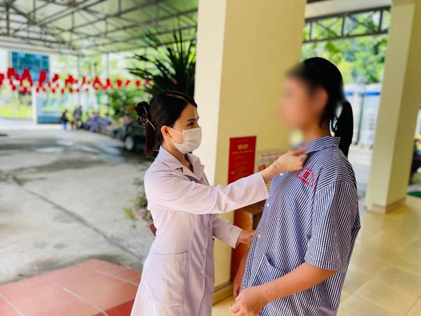 Hình ảnh: Bác sĩ Vũ Thị Minh Hằng – Khoa Điều trị Tổng hợp khám cho bệnh nhân lứa tuổi học sinh đang điều trị tại khoa
